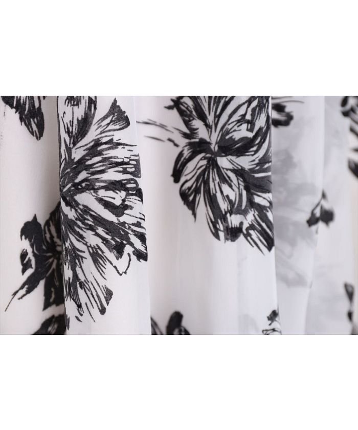 ふわりとエアリーに揺れるシアー素材に、ドラマティックな大ぶりのフロッキーフラワーを浮かべたフレアスカート。