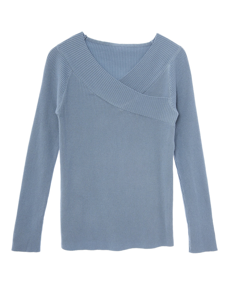 カシュクールのデザインが、デコルテをきれいに魅せてくれるニットトップス。
