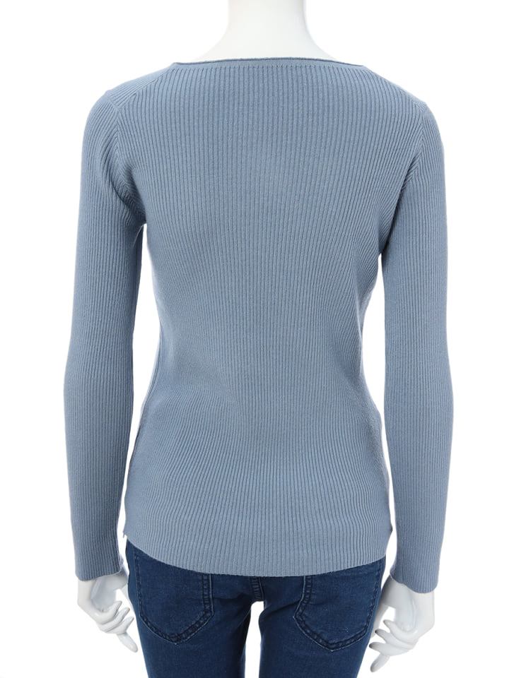 ほどよくボディにフィットするリブが、女性らしいラインを引き立ててくれます。