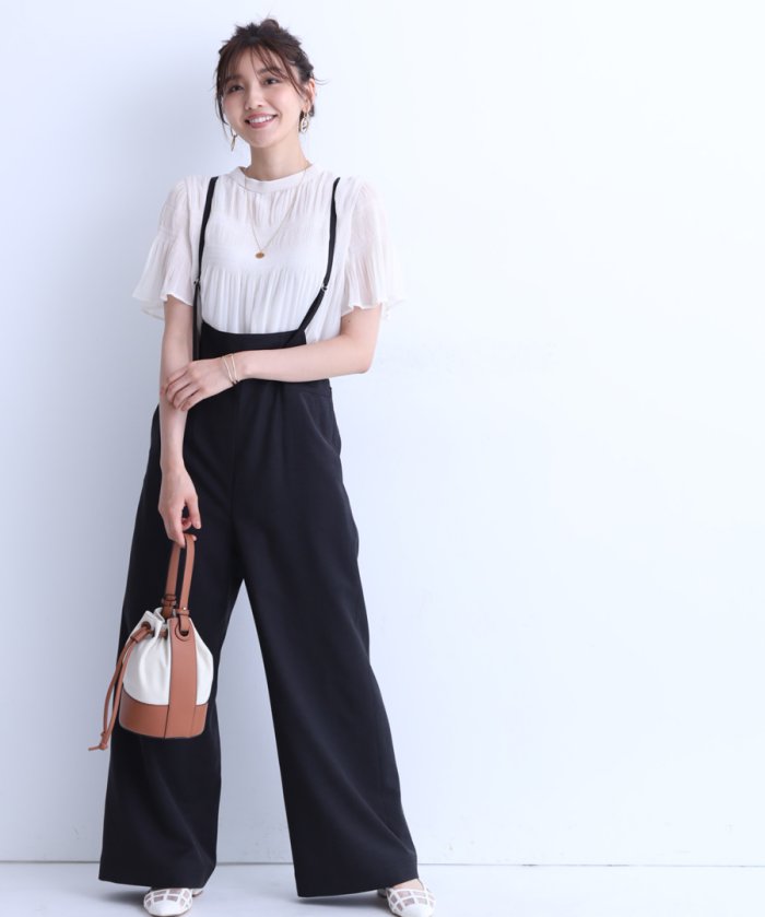 トレンドのハイウエスト仕様にすることで脚長に見せてくれるうえ、胸元が適度に強調されることで、さりげないバストUP効果も期待できます。