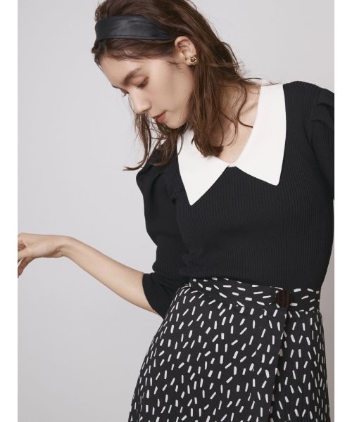 シワになりにくく、落ち感のある生地を使用しました。(SWFO214065)と同じ変形ドットをプリントしたアイボリーとブラック、グリーンの3色展開です。