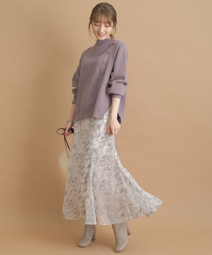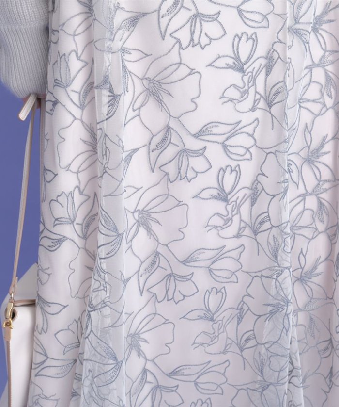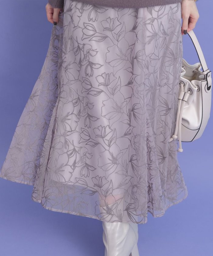 ラインフラワーの総刺繍がエレガントな大人の女性らしさを演出するスカート。