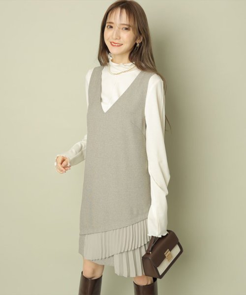 インナーがセットになった、レイヤードコーデが即楽しめるジャンパースカート。