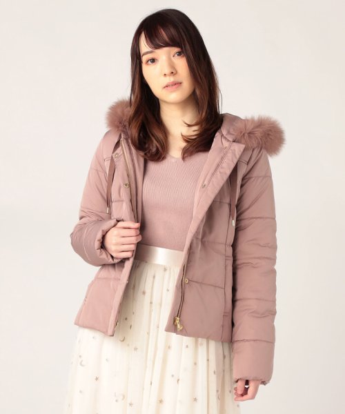 フードにあしらったファーは同色で揃えることで上品な印象に。