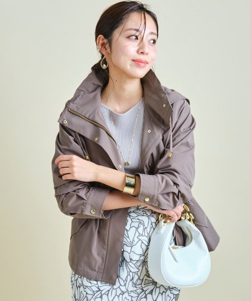 キレイめコーデを軽やかにまとめたい時にも役立ってくれる、フード付きショートブルゾンが到着! ハリのあるさらっとした生地を使用した、美しい風合いが魅力のアイテム。ドロストコードをキュッと絞ればすっきりとしたシルエットにチェンジできます。