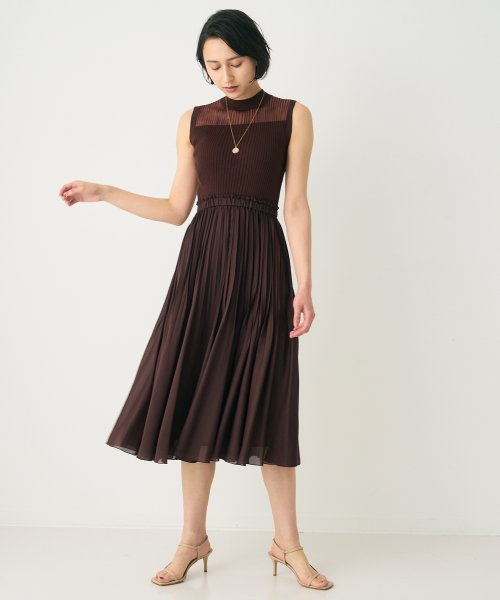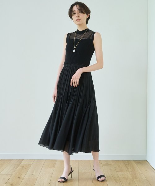 ニットのトップスと布帛のスカートをドッキングしたワンピースです。