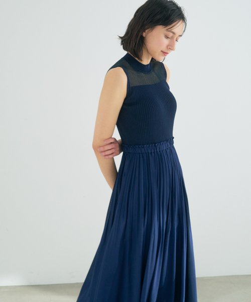 好評だった21AW展開のシアーパフスリーブドッキングワンピース(品番10212714610)から、リブのピッチを変えており、中心は太ピッチリブ、脇は細ピッチリブで切り替え、よりすっきりと着て頂けるようアップデートしました。