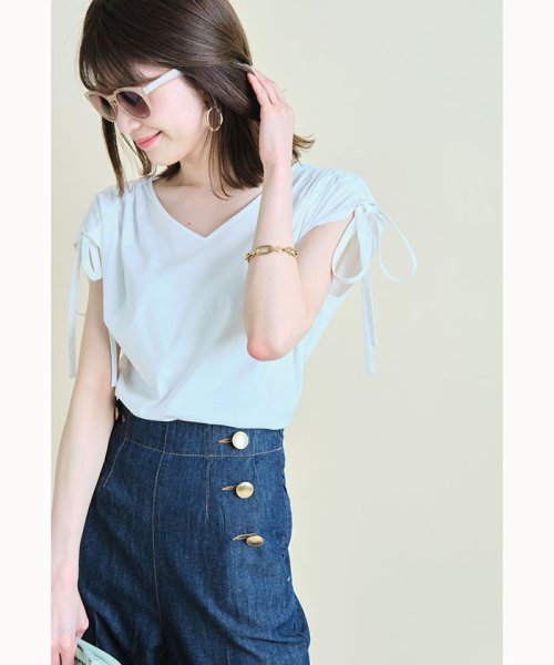 ショルダーのギャザー+リボンが愛らしさをプラスするカットソー。